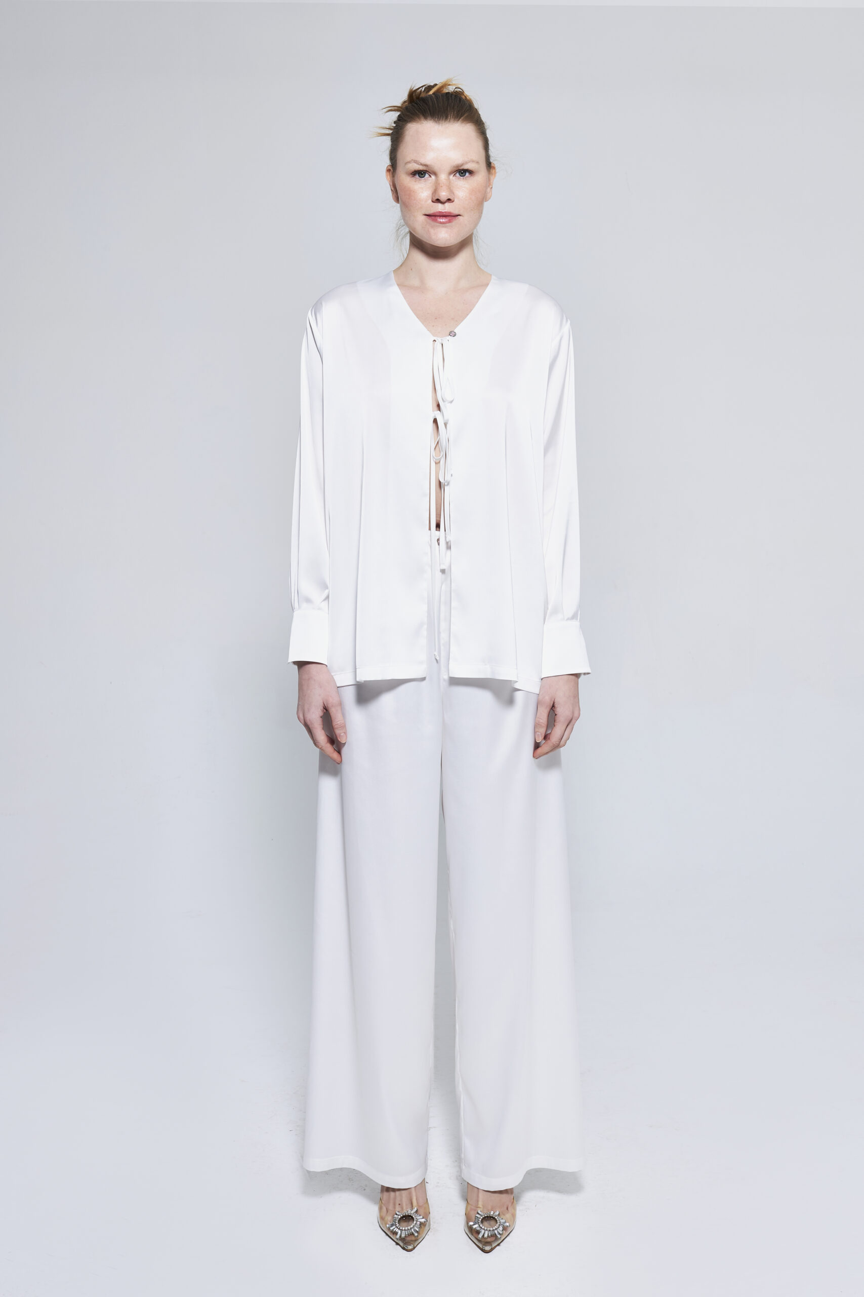 İpek tuşeli saten ve dantel detayı
